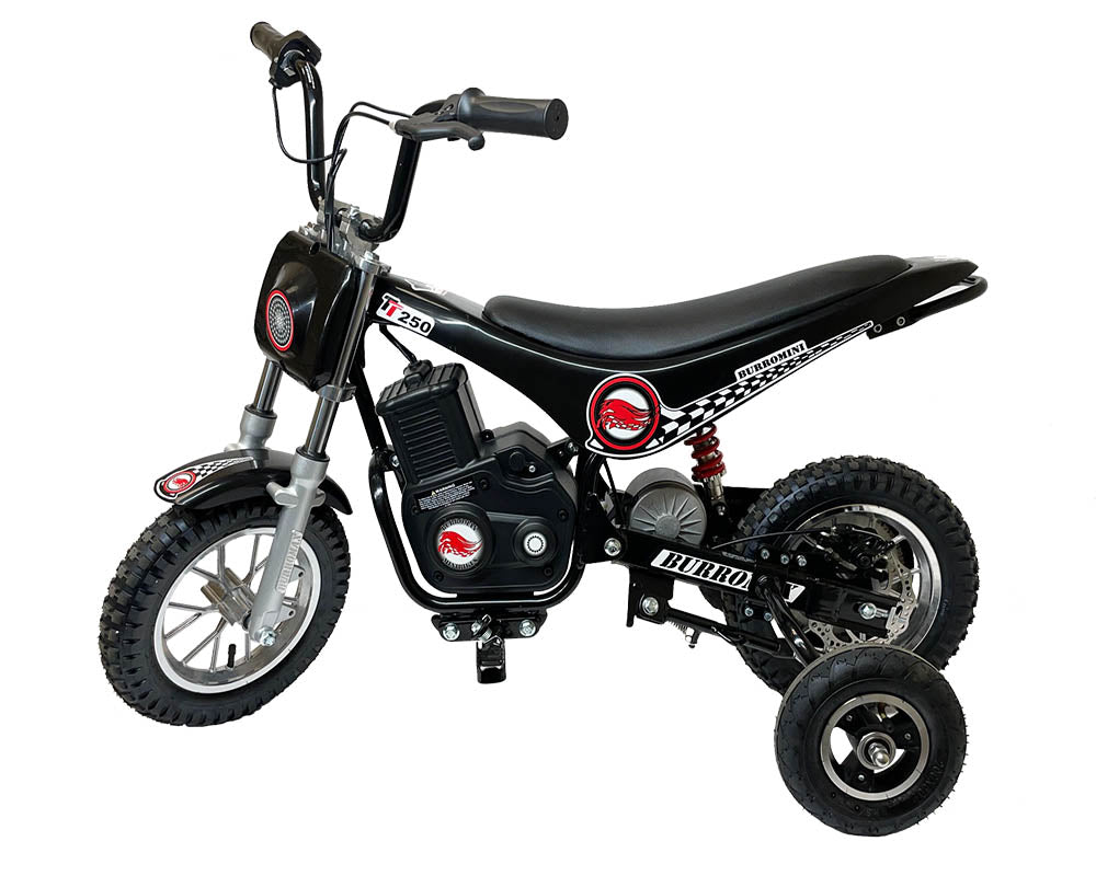 Burromax | TT250 | Electric Dirt Bike w/ Training Wheels Sale! from $459.95 OUT OF STOCK This item is currently on backorder but you can still purchase it now and we'll ship as soon as more become available.